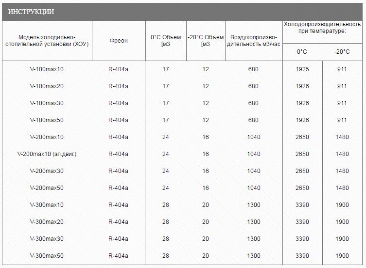 Технические характеристики моделей серии V-100, V-200 и V-300 от Thermo King
